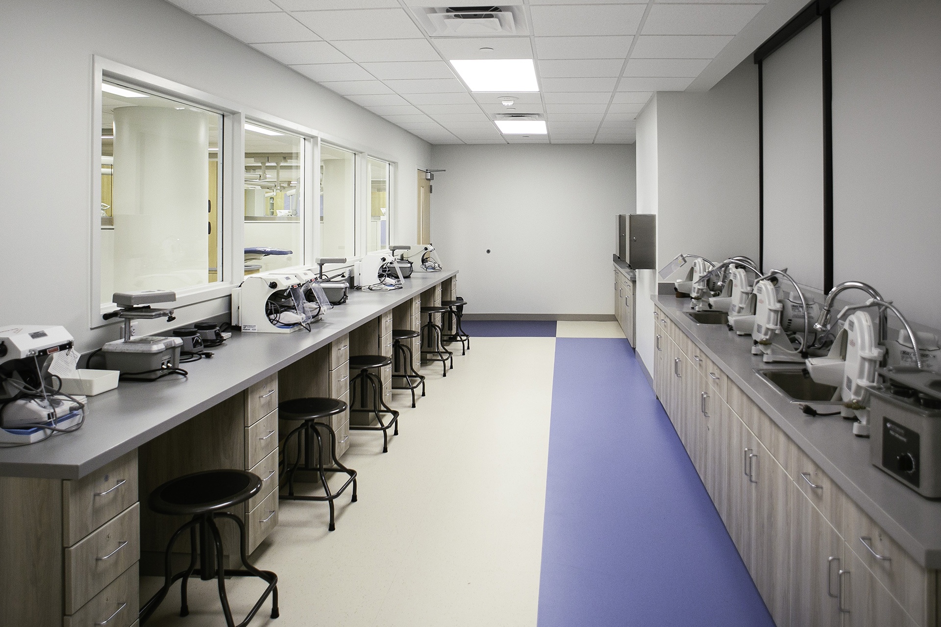 The university’s dental program relocation project created a modern space that supports hands-on learning and clinical training. The new facility includes 20 dental chairs, a multipurpose lab equipped with two additional chairs, two classrooms, a student lounge, and staff offices and conference rooms. To enhance instruction, the space features sterilization rooms where students learn proper cleaning techniques for dental tools and equipment, as well as a multipurpose lab designed for shaping mouth molds and practicing advanced procedures. Through careful planning and coordination, Vaughn delivered a functional, state-of-the-art environment that strengthens the dental program and supports the university’s commitment to student success.